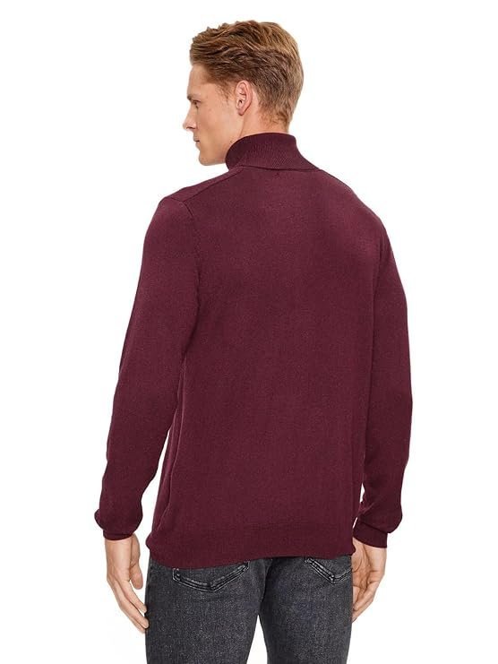 GUESS Maroon Polyamide Blend Solid Pullover Sweater