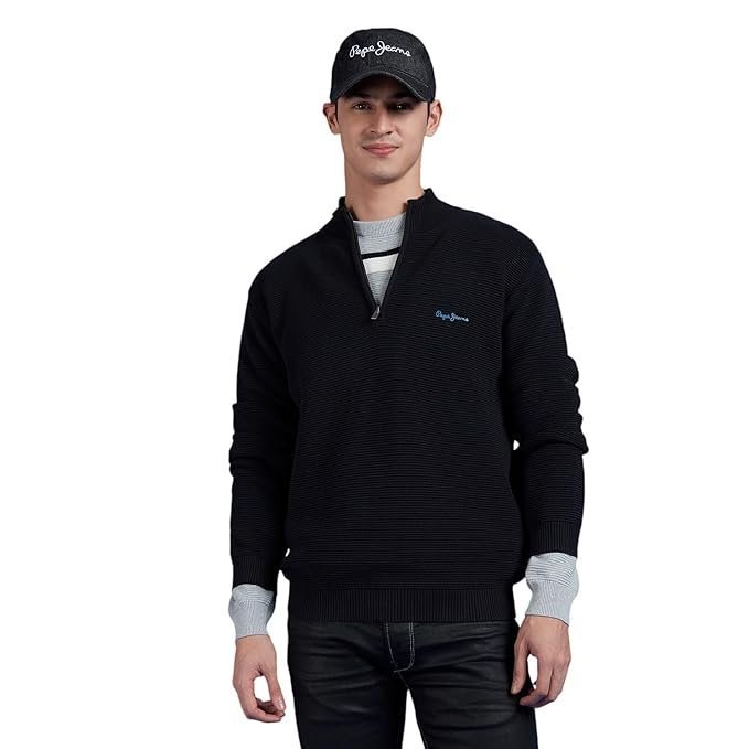 Full sleeves for warmth and coverage Quarter-zip design for a sporty aesthetic High neckline for a sleek silhouette Suede branding detail for an artisanal touch Ribbed cuffs for a neat finish